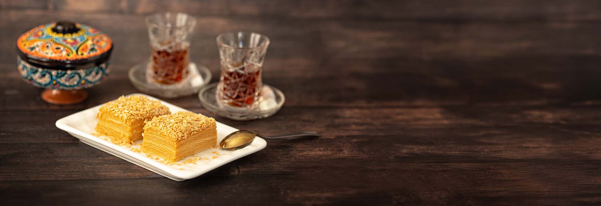 Тончайшее тесто, замешанное на натуральном фермерском кефире, прослоенное нежным заварным кремом на основе фермерского молока.